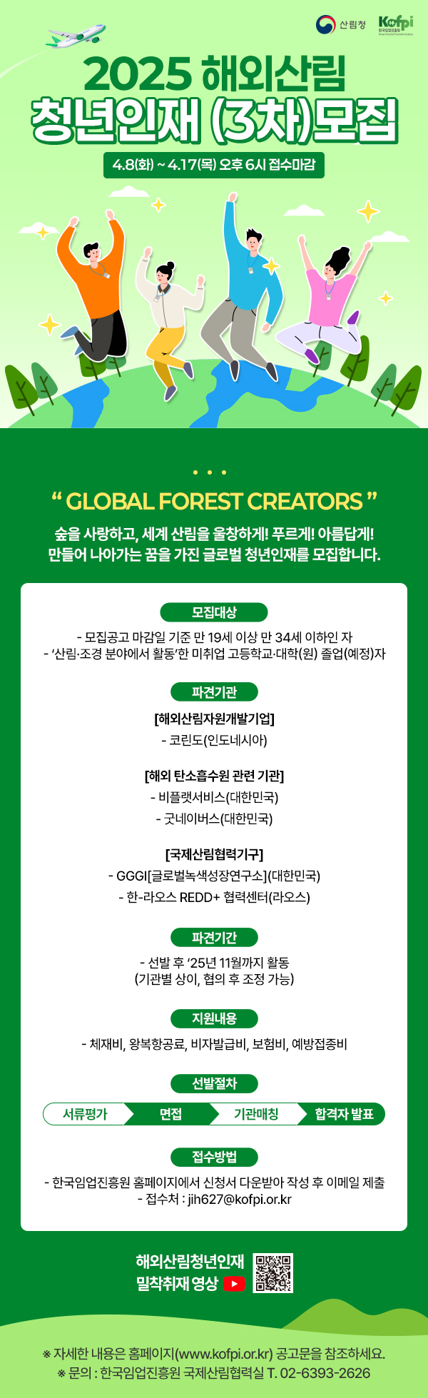 [한국임업진흥원] 「2025년 해외산림 청년인재 육성사업」 참여자 (3차)모집 공고 알림 - 지원기간 연장